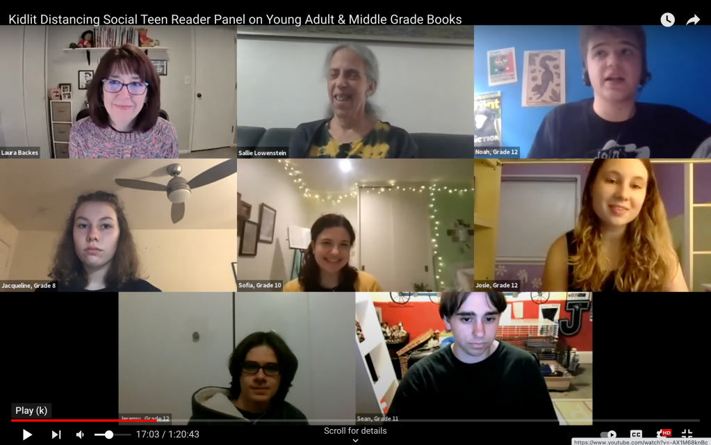 I discovered Sallie Lowenstein and her newsletter while binge-listening to Children’s Book Insider’s Kidlit Socials on Youtube. Sallie hosts a writing group for young people in the DC area, and has for years. She and several kids from her group participated in the Kidlit Social: Teen Reader Panel on Young Adult & Middle Grade Books.